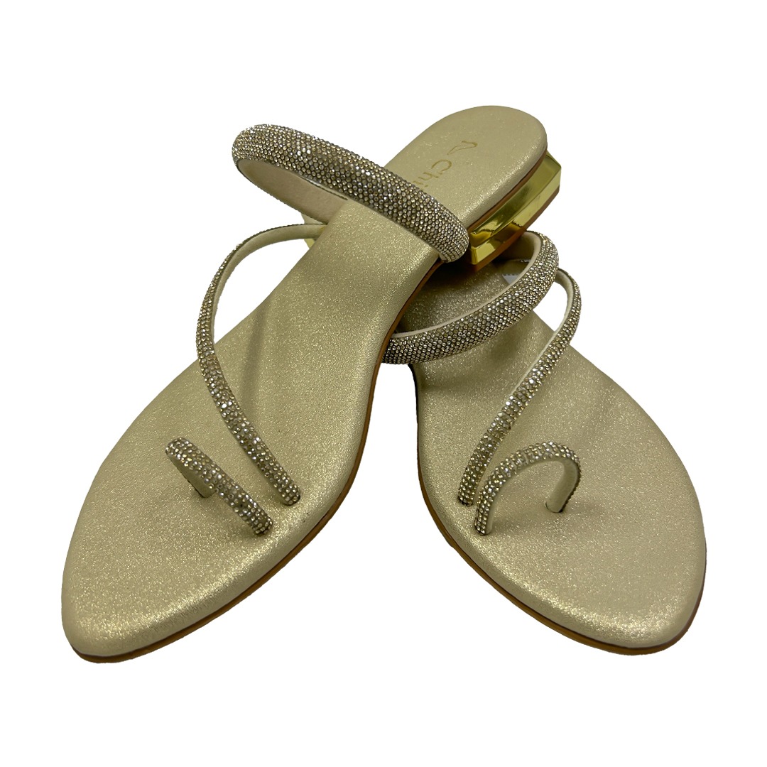Step into effortless elegance with the Chic4u Premium Golden Party Flats. Designed with a unique spiral strap and shimmering golden finish, these flats bring the perfect blend of comfort and glamour. Whether you’re heading to a festive event, a wedding, or a casual outing, this pair adds instant charm to your look.